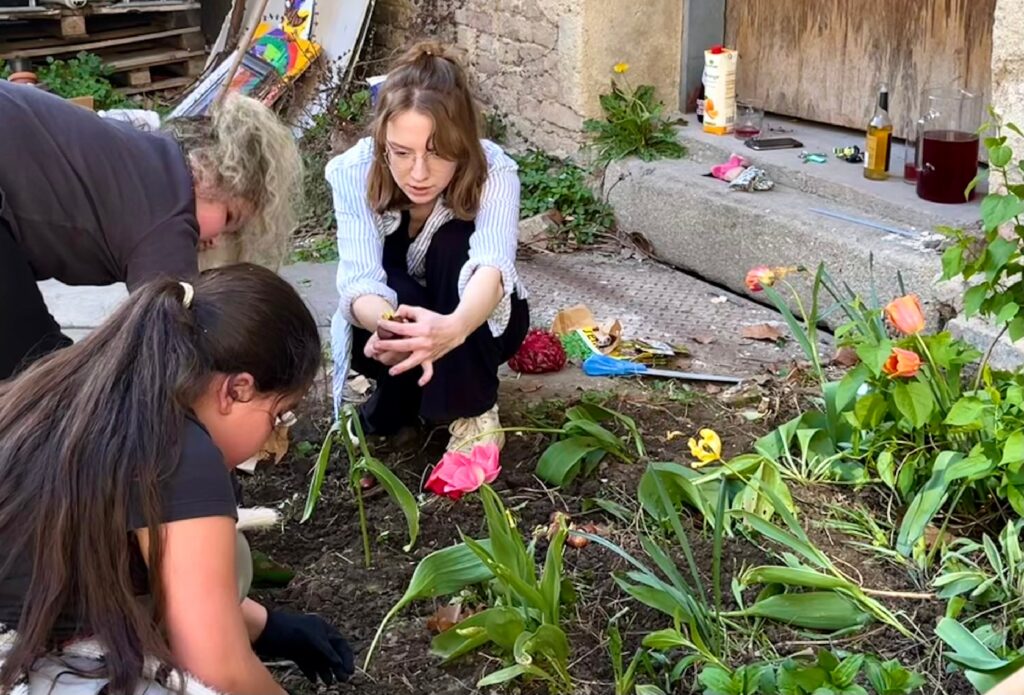 In Brno, a small grant helped residents improve a garden in a former 18th-century prison. Since 2018, the prison has housed the Kaznice cultural and community center. Local residents who frequent the cultural center have transformed the old prison courtyard into a community garden. A Via grant of $2400 enabled them to make necessary repairs to planting beds, restore composting equipment and install a rainwater collection system. Residents share gardening knowledge here, bringing new skills to neighbors. The Tripitaka association, which manages the community and cultural center in the former prison, uses the garden to hold events to bring the neighborhood together.
